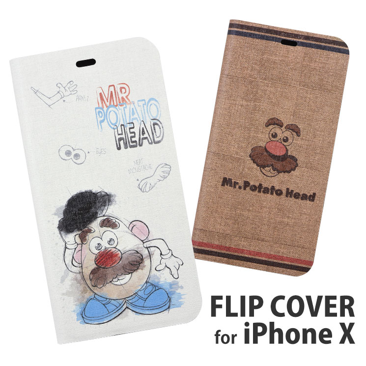 Mr.ポテトヘッドデザインのiPhoneXS/X対応フリップカバーが登場! ケース装着時でもライトニングケーブルやイヤホンの接続が可能なので、充電し放題!音楽聞き放題! 動画視聴時などに便利なスタンド機能付き! iPhone全体を覆う手帳型ケースPU製のプロテクトケースです。